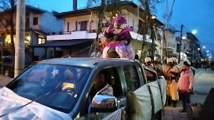 Καρναβαλική παρέλαση στο κέντρο των Κρηνίδων, μουσικές και διασκέδαση.