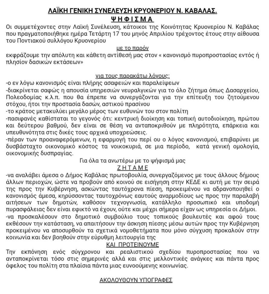 ΛΑΪΚΗ ΓΕΝΙΚΗ ΣΥΝΕΛΕΥΣΗ ΚΡΥΟΝΕΡΙΟΥ Ν. ΚΑΒΑΛΑΣ.