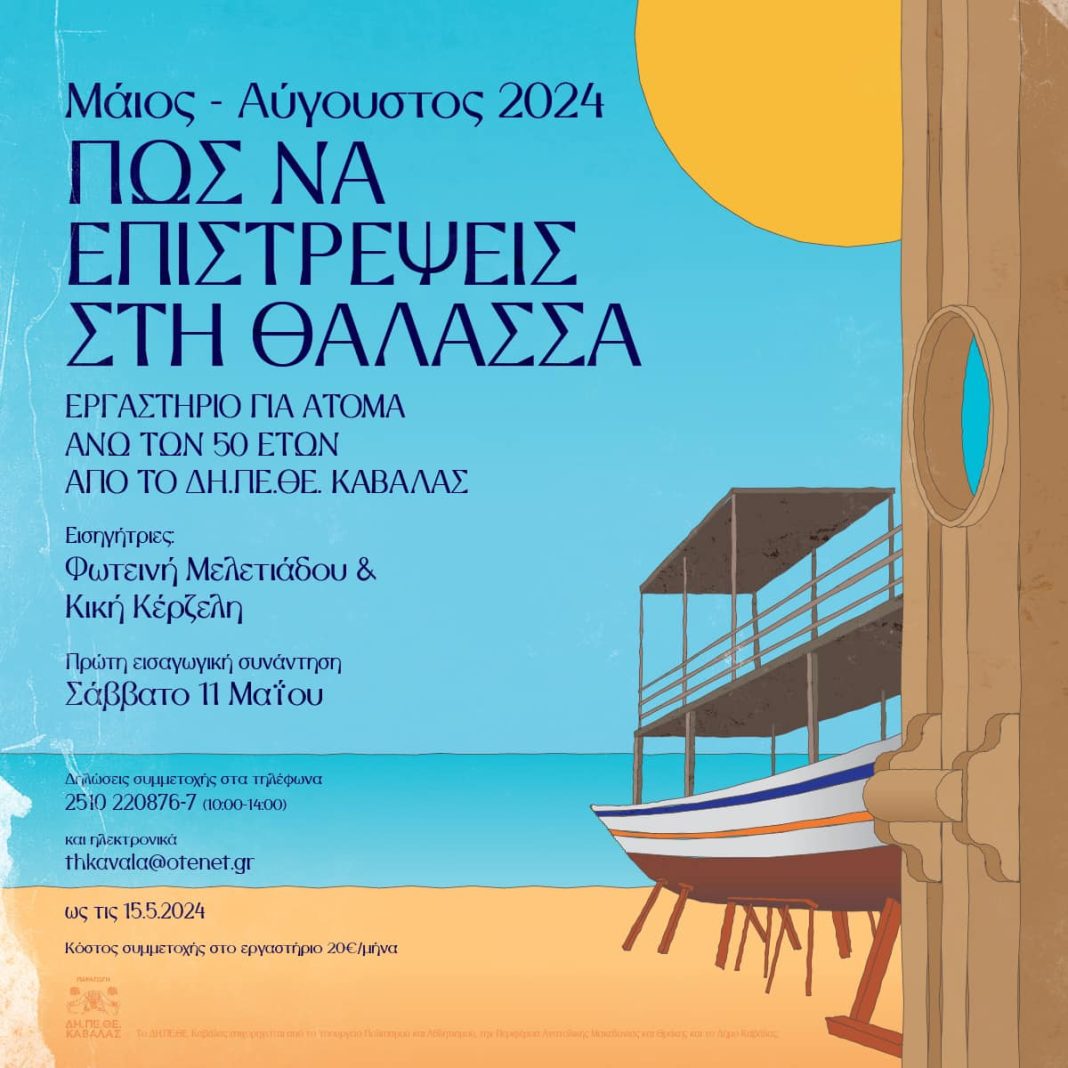 Το ΔΗΠΕΘΕ Καβάλας προσκαλεί άτομα άνω των 50 ετών να συμμετάσχουν στο νέο εκπαιδευτικό πρόγραμμα με τίτλο Πως Να Επιστρέψεις Στη Θάλασσα.