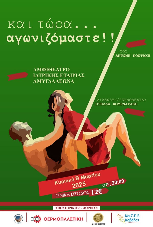«Και τώρα… αγωνιζόμαστε» του Αντώνη Κοντάκη, την Κυριακή 9 Μαρτίου, στις 20:00, στο Αμφιθέατρο της Ιατρικής Εταιρίας, στον Αμυγδαλεώνα. Γενική είσοδος: 12€.