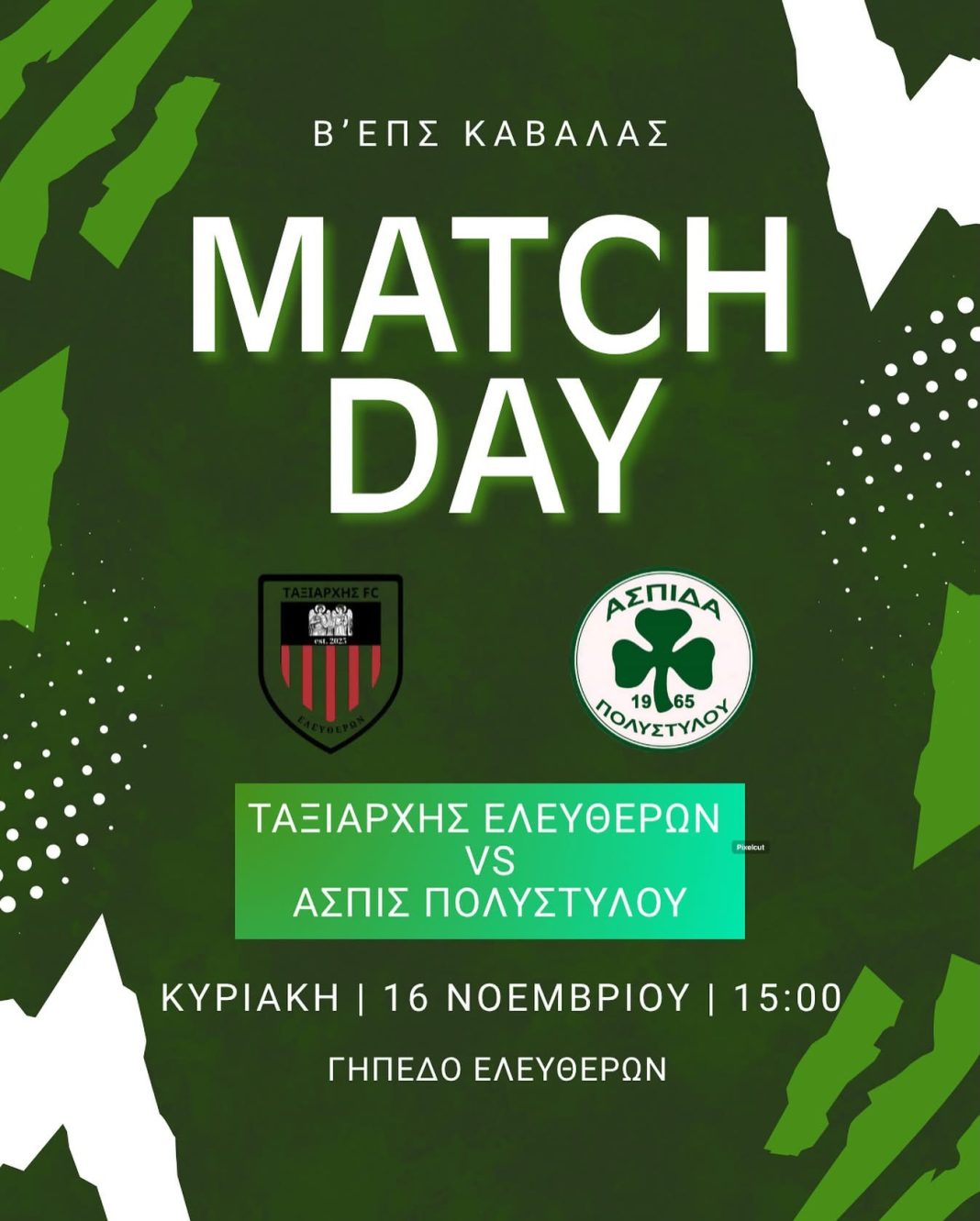 Σήμερα Κυριακή 16 Νοεμβρίου, στις 15:00, η Ασπίδα Πολυστύλου αντιμετωπίζει εκτός έδρας τον Ταξιάρχη Ελευθερών.